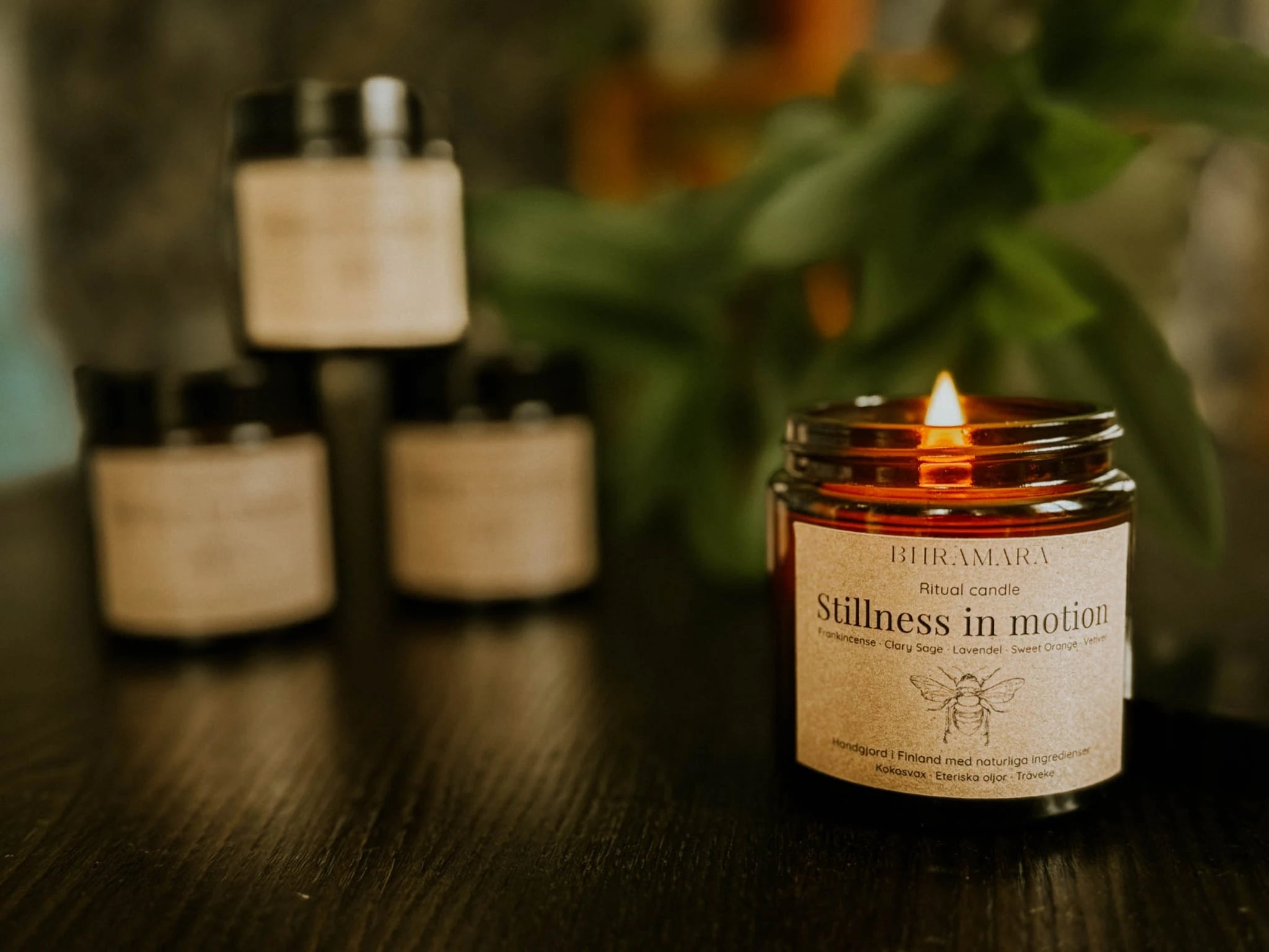Jag skapade Bhramara under en tid när jag behövde hitta lugn mitt i kaos. Med enkla, ekologiska ingredienser och medvetet utvalda dofter vill jag erbjuda något mer än bara ett fint ljus – en liten ritual av stillhet, doft och närvaro. En chans att stanna upp, mitt i rörelsen.